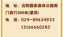 地 址:沈陽國家森林公園南門前行300米(望濱) 電 話:024-89634933 13166660282  024-24821827